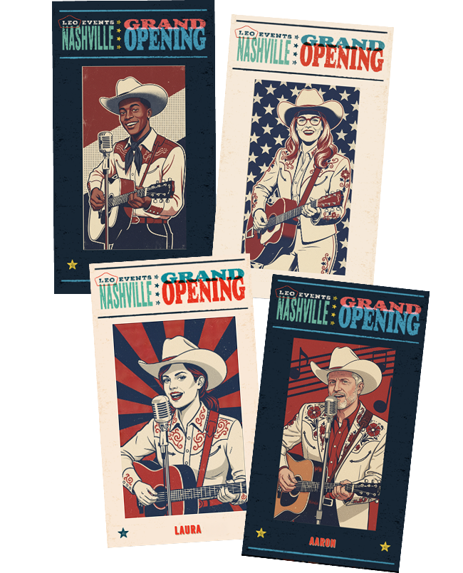 Wow attendees with the magic of our AI Portrait Experience! Take a photo and see it transformed from a prompt set by you to match your event's theme. Create fun and unique images that can be shared to a public display, downloaded to keep, or shared on social media.